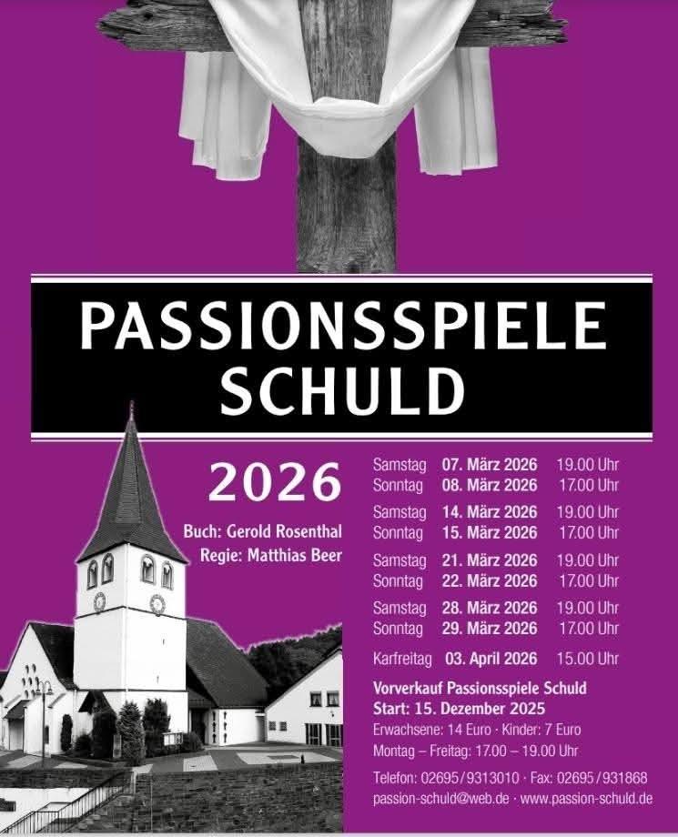 Kartenvorverkauf ab 02.01.2026 unter passion-schuld@web.de oder telefonisch unter 02695/9313010