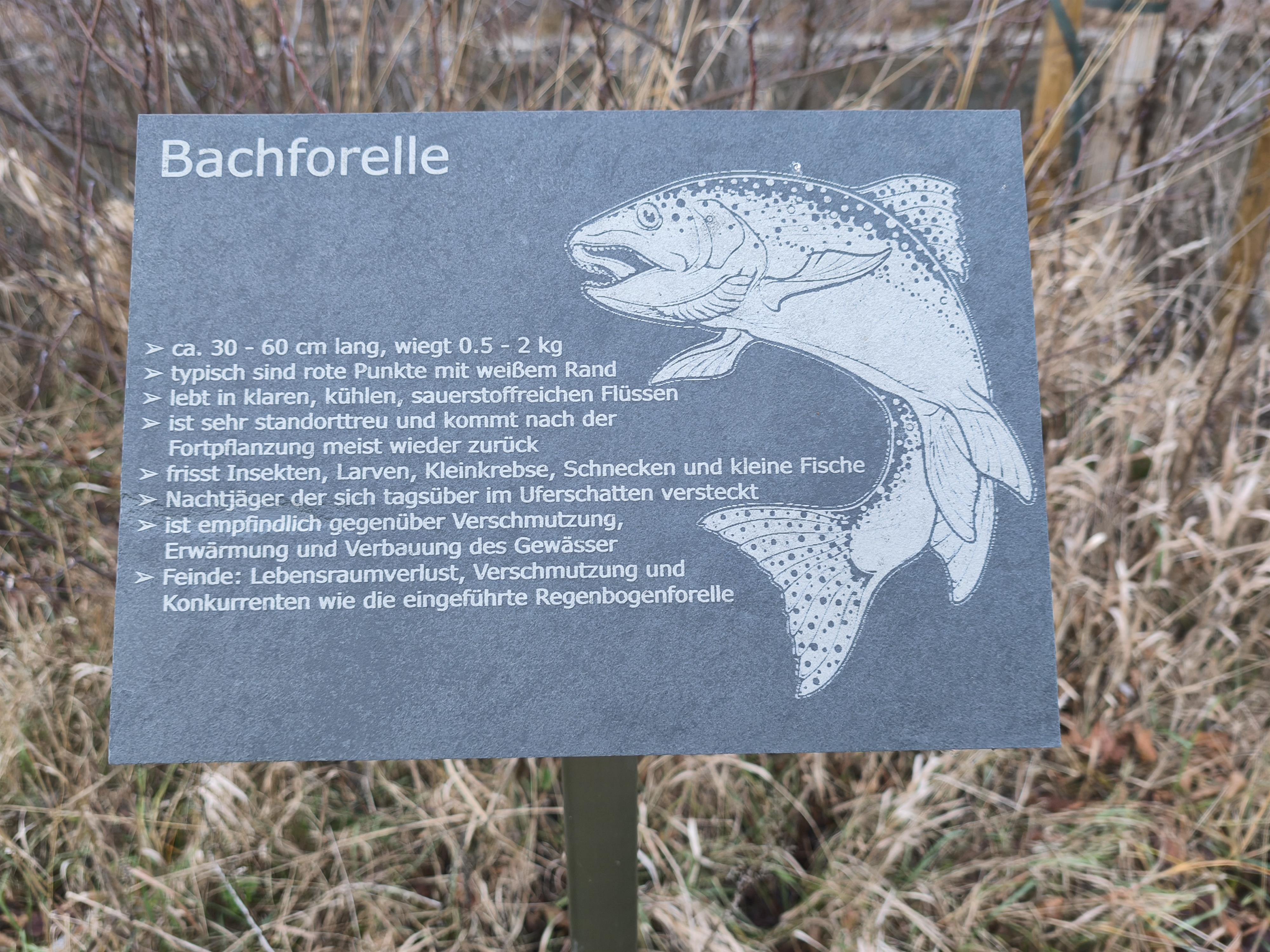 Entlang des rund 400 m langen Weges präsentieren 16 Schiefertafeln Informationen über Tiere wie Eisvogel, Bachforelle oder Rotmilan sowie Pflanzen und Bäume wie Spitzwegerich, Hainbuche und Pfaffenhütchen. Insektenhotels und Erinnerungstafeln an die Flut ergänzen den Naturpfad als Ort des Lernens und Verweilens.