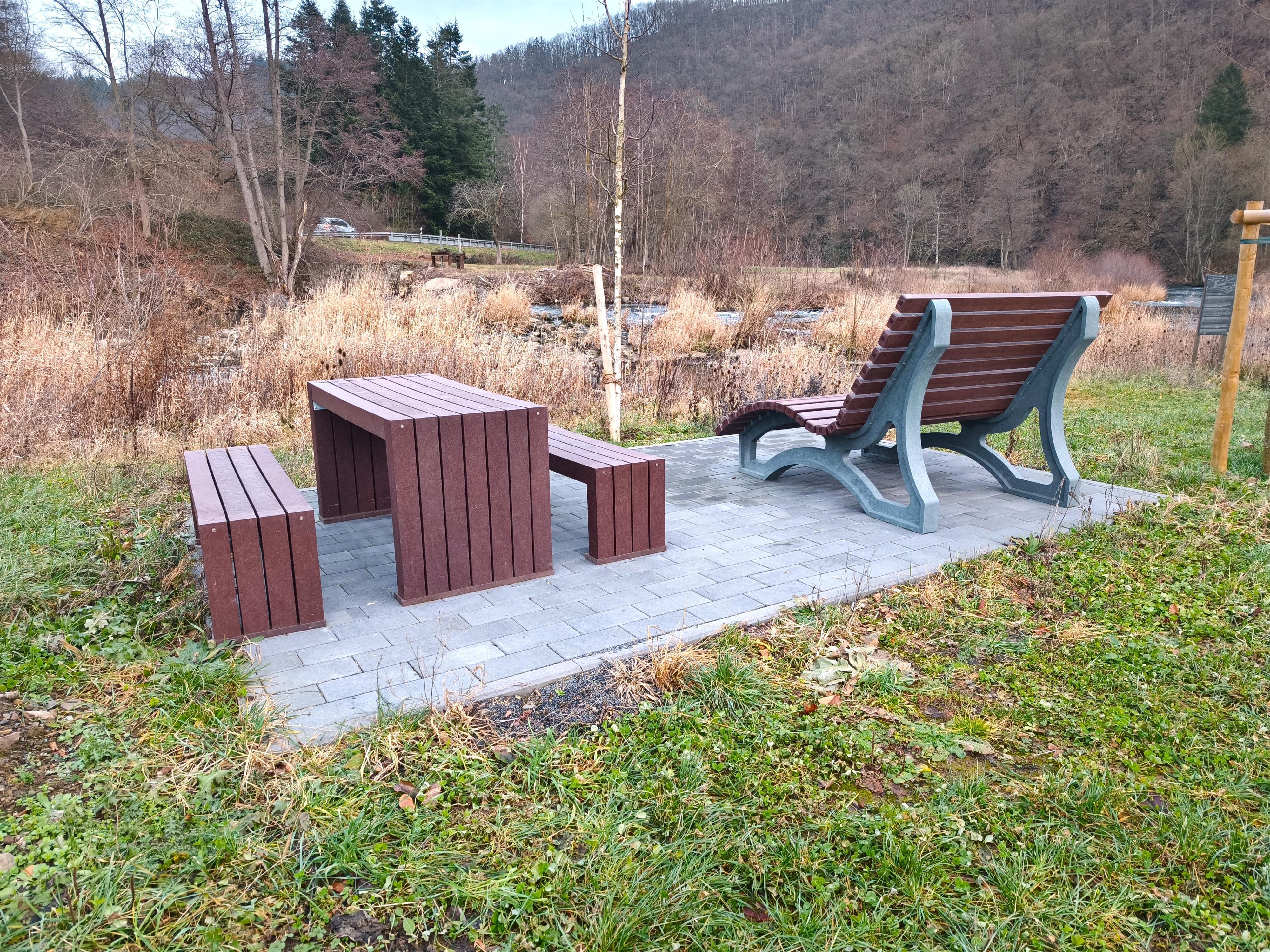Ein gemütlich angelegter Picknickplatz mit wunderbarem Blick über die Ahr lädt zu einer kleinen Auszeit ein.